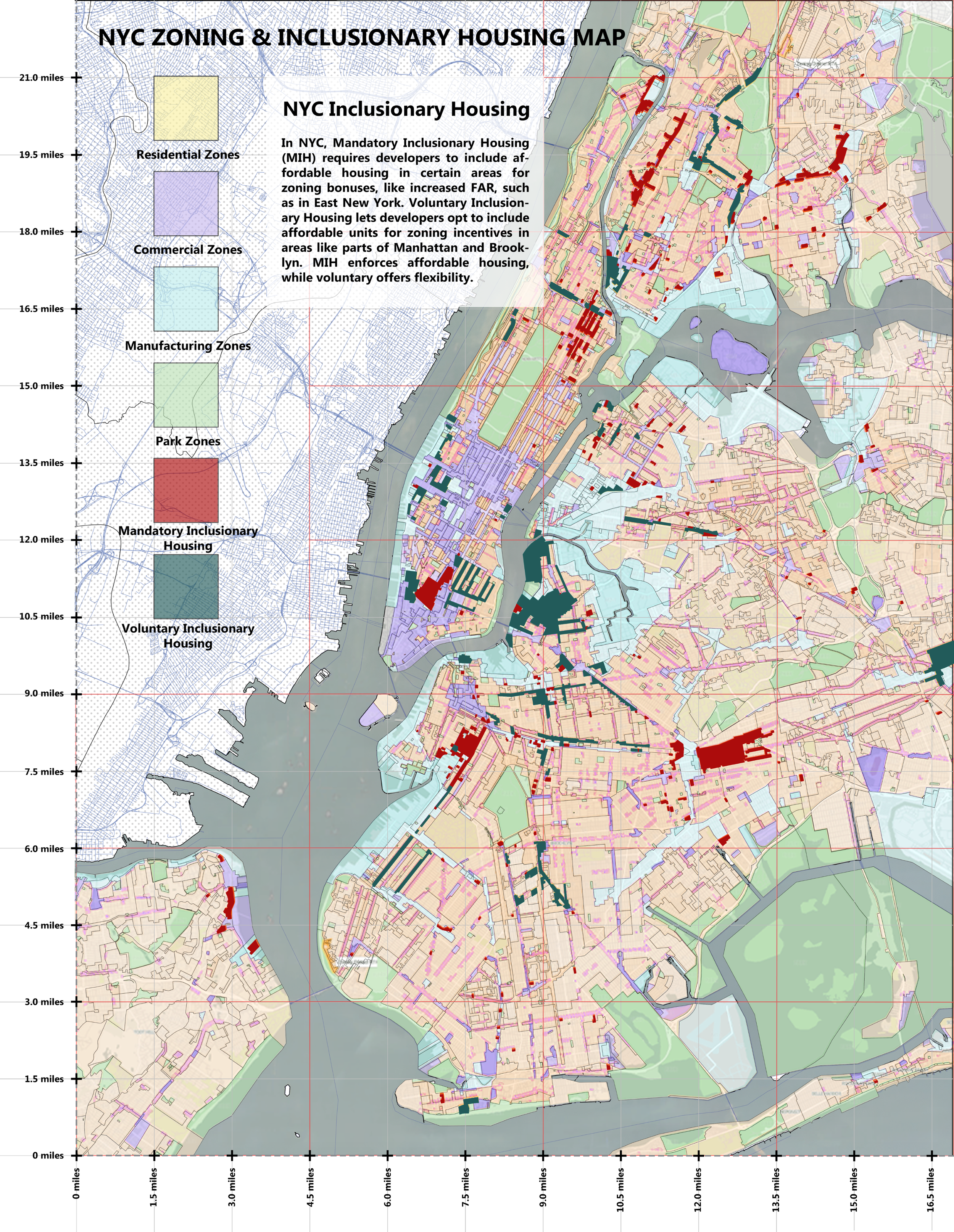 This program allows developers in certain high-density zoning districts to receive zoning bonuses, such as increased floor area, if they set aside a percentage of residential units as permanently affordable. While not required, this incentive-based model encourages the private sector to integrate affordable housing into new developments, particularly in high-demand areas.Mandatory Inclusionary Housing (MIH):